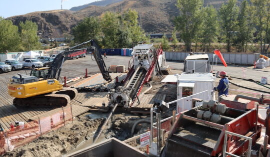 一个导向的水平螺旋钻孔将用于在南弗雷泽周边道下交叉。这项工作分阶段进行,首先在交叉区域的两侧建立临时工作空间。其中一个站点将放置钻机和相关设备,另一个站点将作为管道的分段站点,包括焊接和管柱。在场地准备好后,将钻探十字路口,然后将管道拉回。钻井阶段完成后,网站将被清除并返回其原始使用。临时车道关闭将在本网站的工作过程中生效,请沿于旗帜人员的方向和网站上的标志。